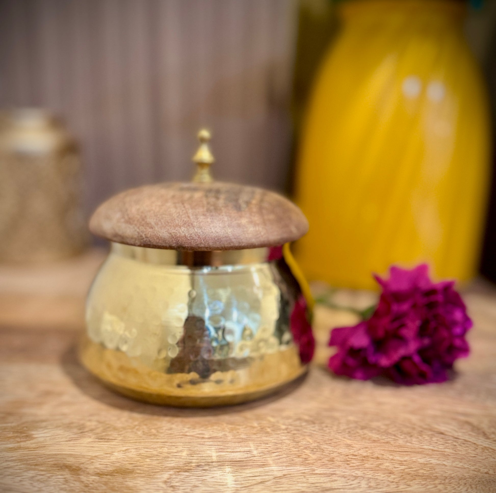 The smooth wooden lid seals in freshness, while the glossy golden base gives maharani vibes every time you open it. Warning: you might catch yourself admiring it more than what’s inside 😄