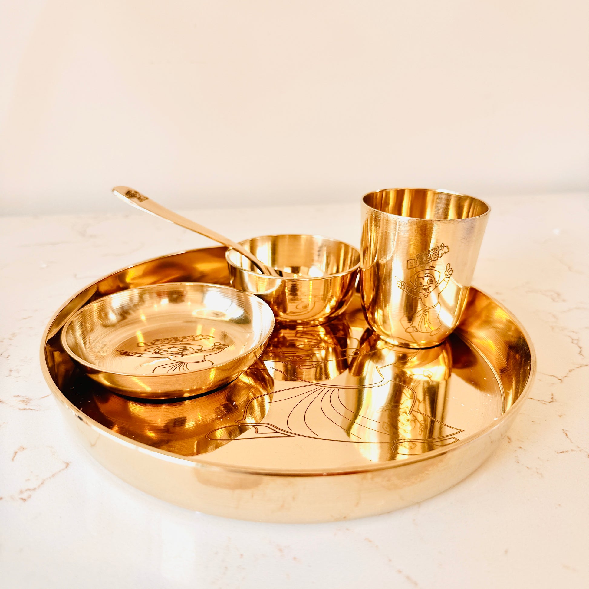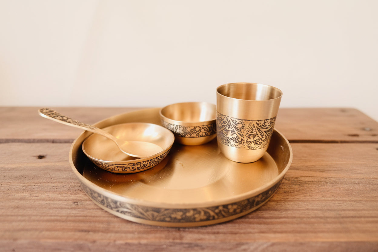 Celebrate your little one’s milestones with our premium Baby Thali Set, thoughtfully handcrafted in pure bronze and made in India. Designed for both tradition and everyday use, this set is perfect for annaprashan, first feeding rituals, gifting for mundan, newborn, or keepsakes that last a lifetime.