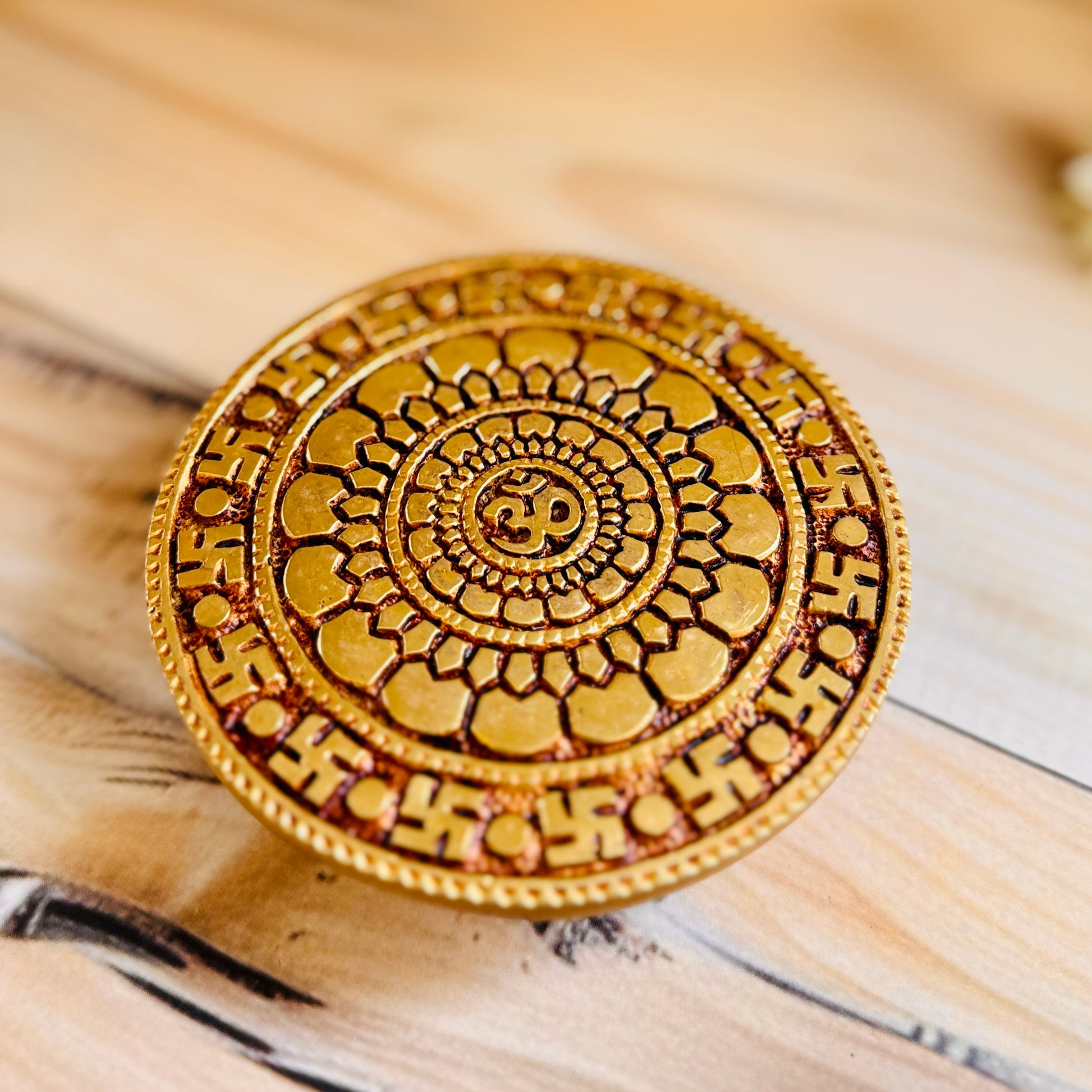 - Round Om Design (Weight: 385g, Diameter: 10cm, Height: 2.5cm) – radiating spiritual calm and positivity.