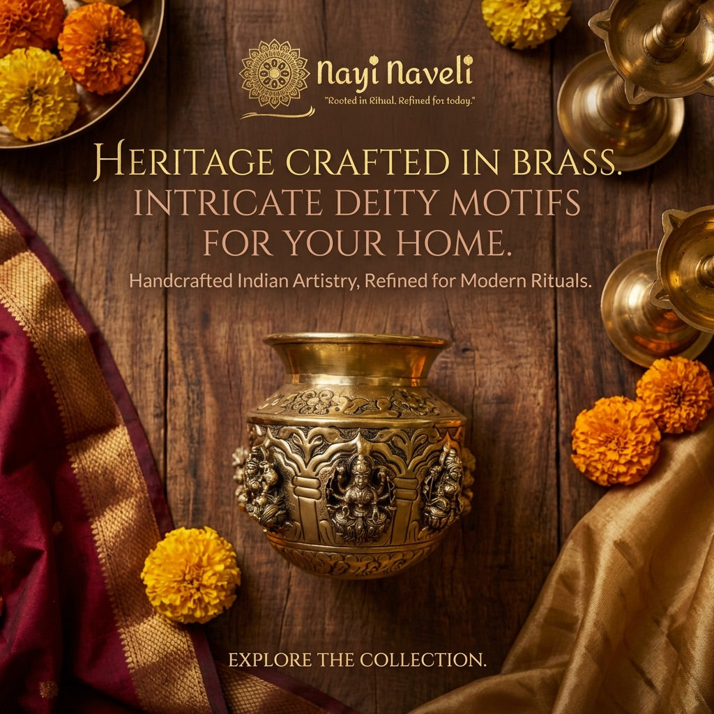 Rooted in tradition and crafted with devotion, these premium pure brass Kalash/Lota are a celebration of Indian artistry. Each piece is richly adorned with intricate, temple-inspired motifs and deity detailing, making it not just a ritual vessel but a statement of heritage and craftsmanship.
