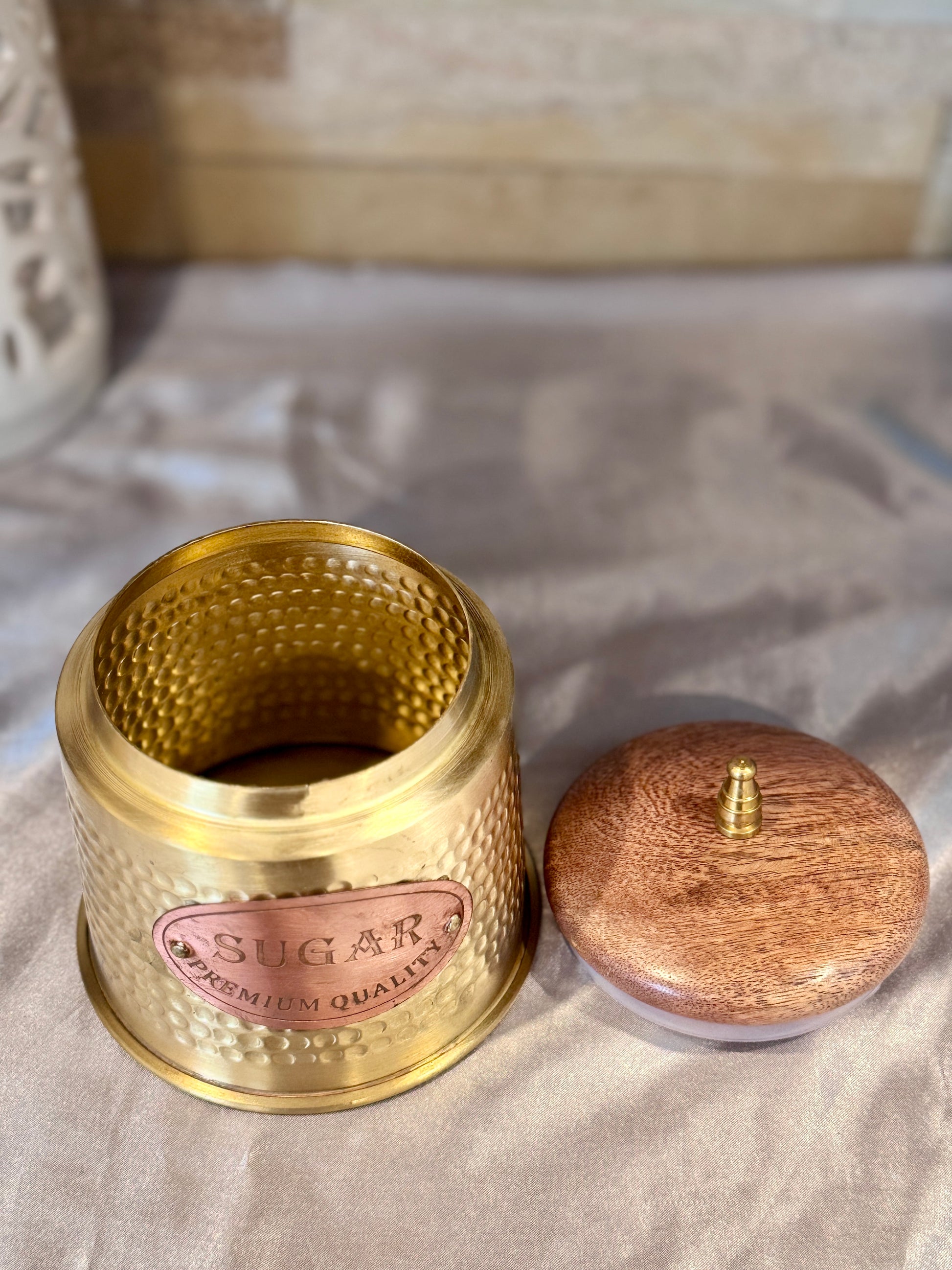 🍯✨ Sweeten your space with this premium brass sugar canister, expertly handcrafted and proudly made in India. With its rich hammered finish and radiant golden glow, this piece blends timeless elegance with everyday function. The bold design is topped off with a snug-fitting lid, keeping your sugar fresh while serving serious style on your countertop.